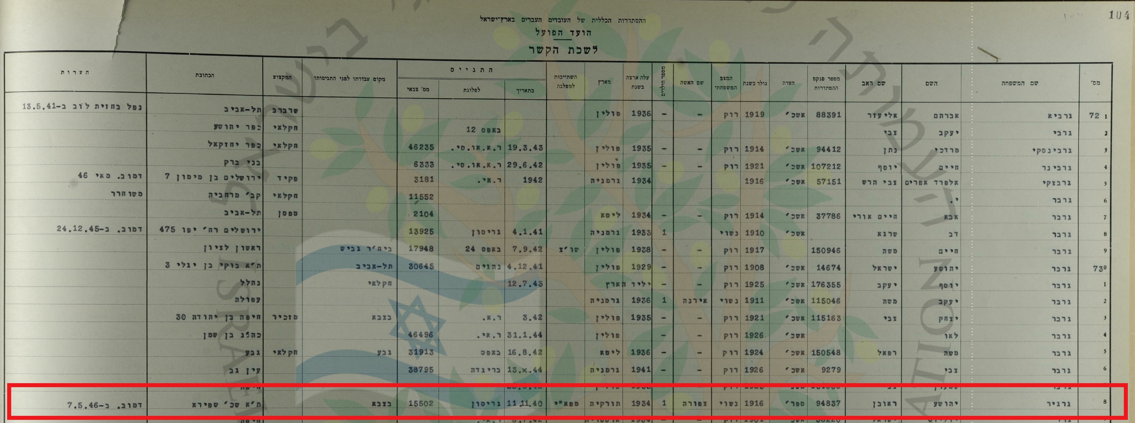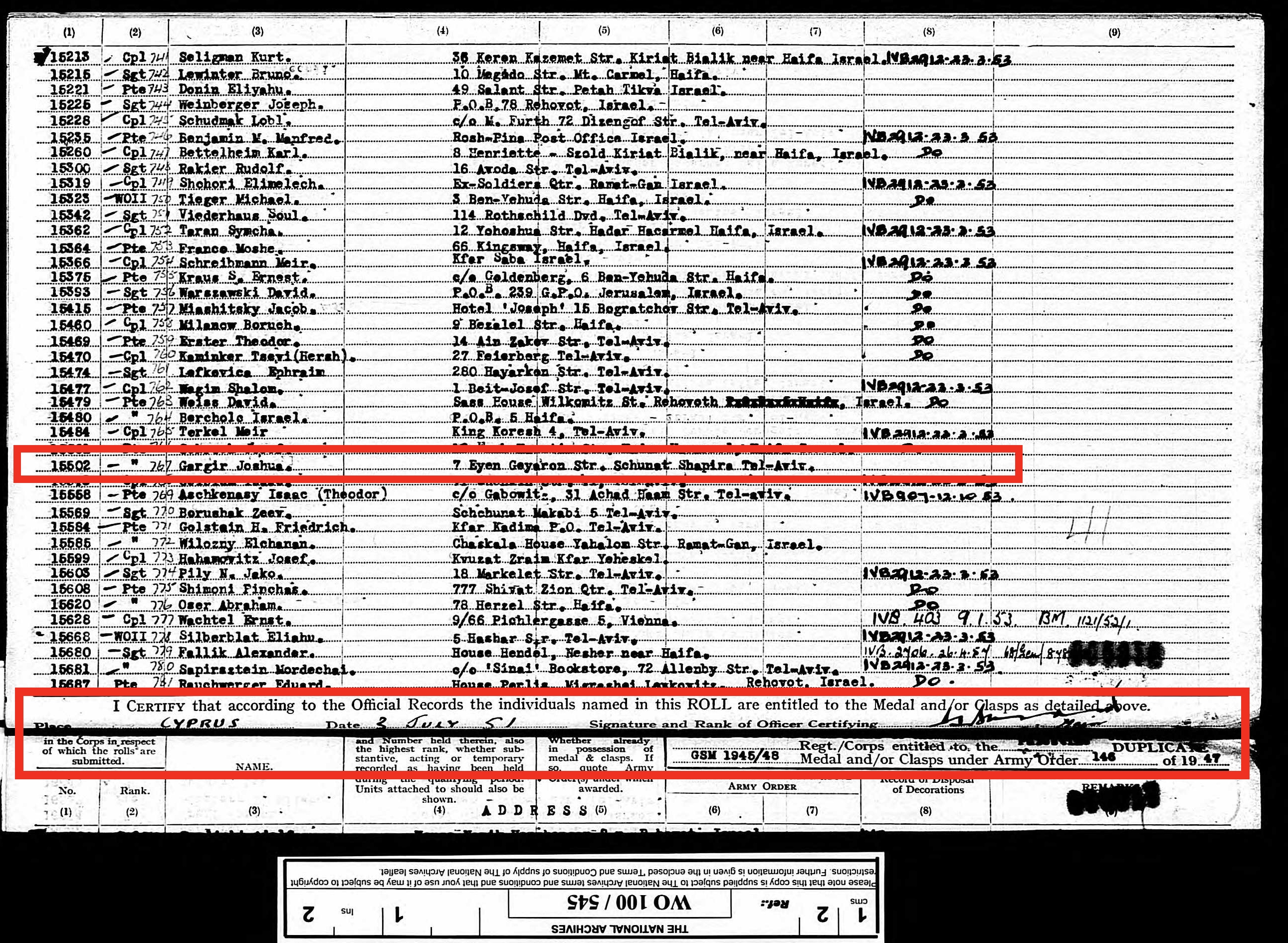 יהושע גרגיר ברישומי לשכת הקשר, כחייל בצבא הבריטי |
